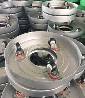 泰州市志偉紡織機(jī)械有限公司地處泰州市姜堰區(qū),地理?xiàng)l件優(yōu)越,交通便利,來往方便。我公司致力生產(chǎn)各種紡織塑料棉條筒、條筒輪、彈簧支架、皮輥架、落紗箱、拉伸底盤等。我公司產(chǎn)的棉條桶是由不銹鋼上口圈、無縫對接、桶身、護(hù)圈(高護(hù)圈)、底盤(高底盤)、底箍(高底箍)、彈簧(高速彈簧)、托盤、萬向輪、編號(hào)、防震圈等十一部分組成。1.紡織用棉條桶上口圈、上口箍選用硬態(tài)不銹鋼,經(jīng)特殊機(jī)械滾軋成型,確保圓整和抗抵觸觸犯強(qiáng)度,后經(jīng)特種拋光處理,保光滑。 2.棉條桶底盤通過液壓機(jī)拉伸成型,加強(qiáng)型鍍鋅高箍底盤,形體不亂,抗磨抗沖擊,使用壽命長。3.彈簧采用65mn優(yōu)質(zhì)碳素結(jié)構(gòu)鋼,由自念頭械加工成元柱縱貫形,并加大上、中、下口徑。4.棉條桶板經(jīng)入口熱熔焊接機(jī)采用無縫焊接技術(shù),確保桶身光滑不開花,不開裂,全新料,可保證塑料板桶身的耐老化程度。5.抗靜電筒身…